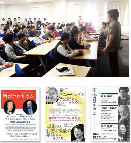 Sustained implementation of this and other such programs will contribute greatly to continuing scientific development and nurture the emanation of new science from Osaka University. The Nambu Colloquium will continue to grow as a nexus for communicating Osaka University science to participants from outside the university. Moreover, it will further impart knowledge of value to those outside, as well as those inside, contributing to growing interest and insight in science by students and others. In this way, we will work to present subjects taken from a broad and growing range and nurture the growth of science at Osaka University, which was once home to Yoichiro Nambu and Hideki Yukawa, and to further the development of this program and its recognition throughout the nation.